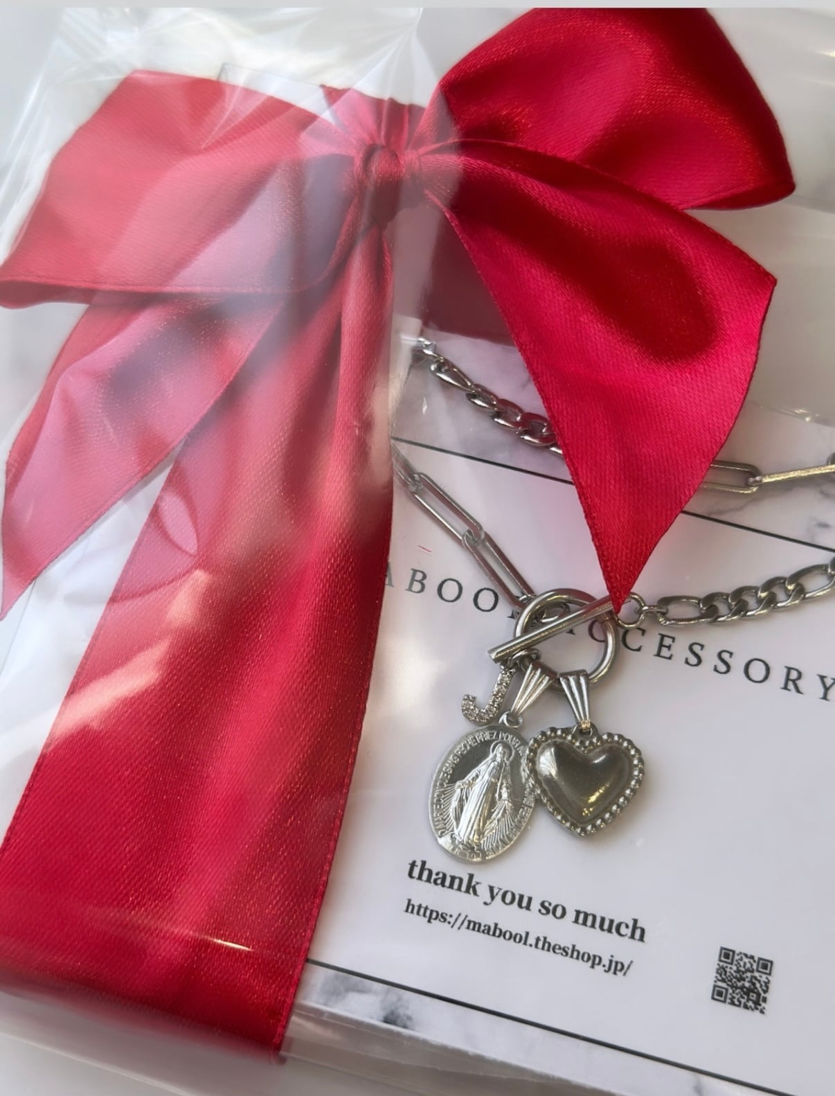 あなたに幸運をもたらす、お守りネックレスが誕生しました。 ーーーーーーーーーー 多彩なデザインが揃ったFigaro series★ 男性にも人気なユニセックスタイプです。 《フィガロチェーンとは》2種類のパーツを組み合わせた、仕上がりのネックレス。 同じパーツをつなげるあずきチェーンと比べてメリハリがあるのが特徴です。 単品でつけても、重ね付けしてもさまになる 人気チェーン。 このチェーンに大人気の 《本物のメダイ》をプラスし、マンテル仕上げにする事でより華やかでお洒落に。 洗練された媚びない美しさを引き立てるデザインに仕上げました。 ーーーーーーーーーー 《本物のメダイとは》フランス製パリの教会の 本物のメダイを使用したネックレス★ メダルを手にした人に奇跡が起こる 幸福が訪れるということで 世界中で有名な 「奇跡のメダイ」 ーーーーーーーーーー 色々出回っていますが mabool では不思議のメダイ発祥の地、パリにある奇跡のメダイユ教会で販売されている 本物のメダイを取り扱っています。 ーーーーーーーーーー チェーンがトップを引き立て華やかに レイヤードにはもちろん、シンプルなお洋服にも映え、1本でもスタイリングが決まるのも魅力です。 シャツやタートルネックにも合わせやすく、 抜け感のある雰囲気に仕上がります。 このお守りネックレスがあなたに沢山のhappyを。 ◎大人気チャームカスタム あなたや大切な方の特別なチャーム ネックレスと相性抜群です♡ ¥800で叶う特別な1本にぜひお勧めです。 人気チャームはこちらから https://mabool.theshop.jp/categories/6596560 【メダイ】 サイズ:縦 20mm×横 13mm。 素材:シルバー/アルミ製 ゴールド/真鍮製。 生産国:フランス製。 【チェーン】 長さ45cm 素材:サージカルステンレス316L 【マンテル】 素材:サージカルステンレス316L 【maboolオリジナル マンテル留め具チェーン】 maboolオリジナル留め具チェーンをご用意しています。マンテルが外れるのが不安な方はご使用ください。 ネックレスのデザインを損なわない 究極にシンプルで無駄のない作りに仕上げています。アズキチェーン、ペタルチェーンで制作いたします。 通常はお付けしません。ご希望の方は購入時に 備考欄に"チェーン希望"とご記入いただければ、 同色のチェーンをお送りいたします。 ⚫︎ こちらの商品は肌に直接触れるチェーンにはサージカルステンレス素材を使用していますが メダイはアルミ、真鍮製素材ですので金属アレルギーなど不安な方はご購入をお控えください。 ⚫︎マリアメダイは1つ1つ風味が若干異なる為、細かな傷、型ヅレが見られる場合もございます。 ⚫︎予告なく使用するパーツやチェーン種類変更がある場合がありますので、ご了承下さい。 ▼梱包について 1つ1つプレゼントをイメージした クリアBOXにリボンを付けての包装をいたします。 (ショップカード付) その為、ラッピングは基本受け付けておりませんが 個別包装しますので、そのままお渡しできるようになっております。 ▼送料について ※商品をご購入のお客様は送料無料。 ⚫︎2個までご購入の場合→ネコポスでの発送。ポスト投函の為日時指定はできません。 ⚫︎3個以上ご購入の場合→大きさにより、宅配便コンパクト、宅急便での発送。日時指定可(希望の場合は備考欄にご記入ください。希望ない場合は最短日の時間指定無しでの発送となります) ▼ご注文合算、同梱について ※システム上合算が出来かねます。 ※別々のご注文でも同梱させて頂く場合がございます。 ▼納品書について ※金額が記載された納品書を同梱しておりますが 必要のない方はご連絡ください。 ▼予約商品と一緒に、即納商品をご購入の場合 商品が全て揃ってからの発送となります。 その為、発送までにお時間がかかる場合がございます。 即納商品のみ先に発送希望の場合は 予約商品、即納商品別々にご注文ください。 ▼住所不備、受け取りについて ・ご注文時に登録されている住所に発送となりますので、注文後の変更は出来かねます。注文確定前にご確認お願い致します。 ・不在で商品がショップに返ってくる場合があります。その際は、着払いにて再度発送いたします。 ▼返品・交換について 衛生上、返品交換は未使用無開封のみ受け付けます。商品到着後7日以内にご連絡ください。 ご要望などございましたら お気軽にお問い合わせください。