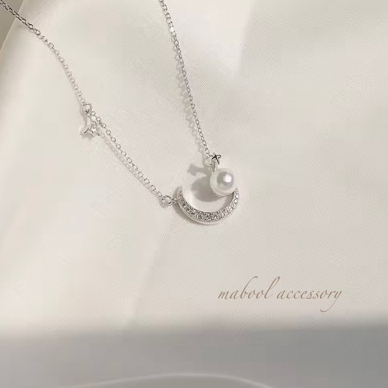 胸元に浮かぶ、ささやかな三日月とひと粒パール。