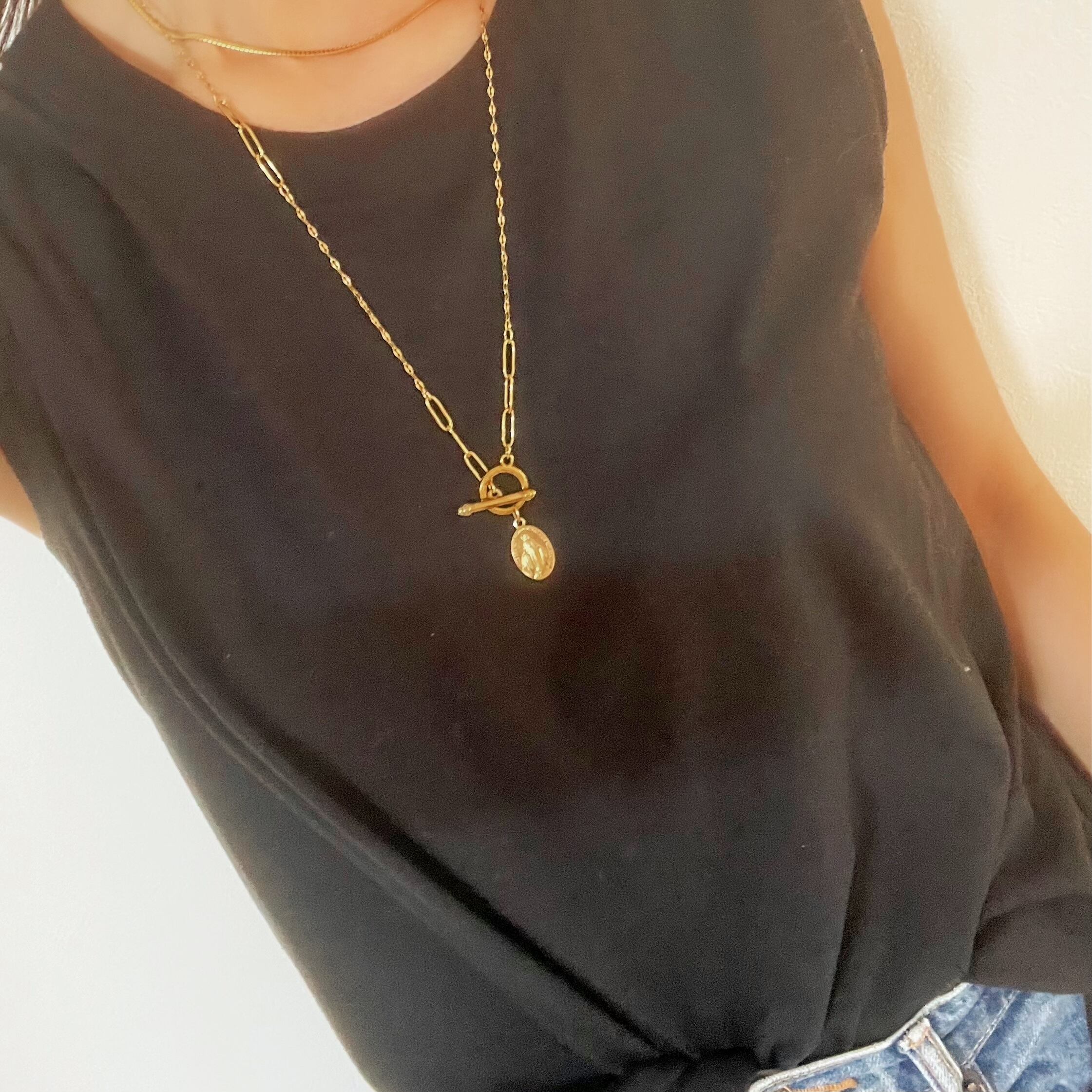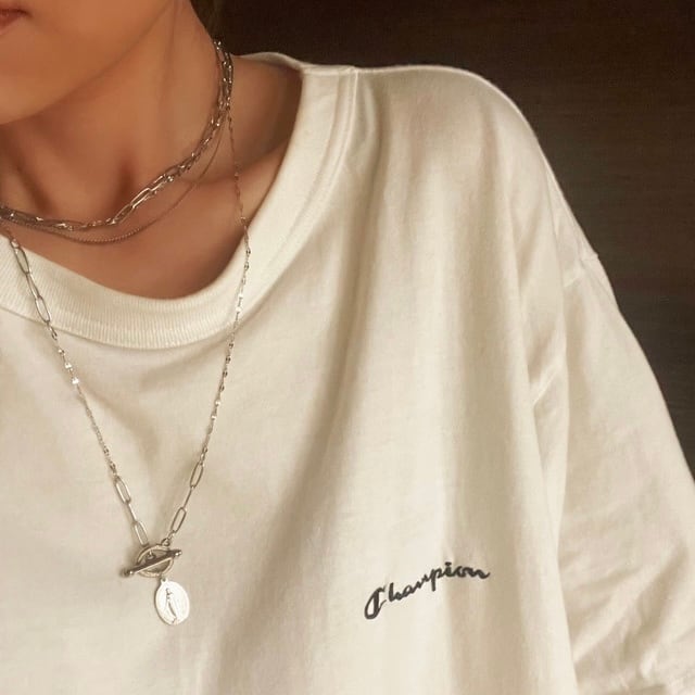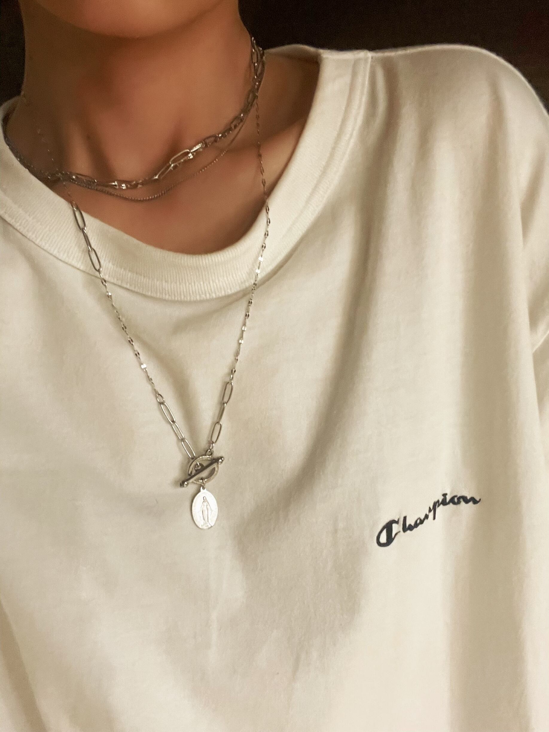 カジュアルになりがちなメダイネックレスを