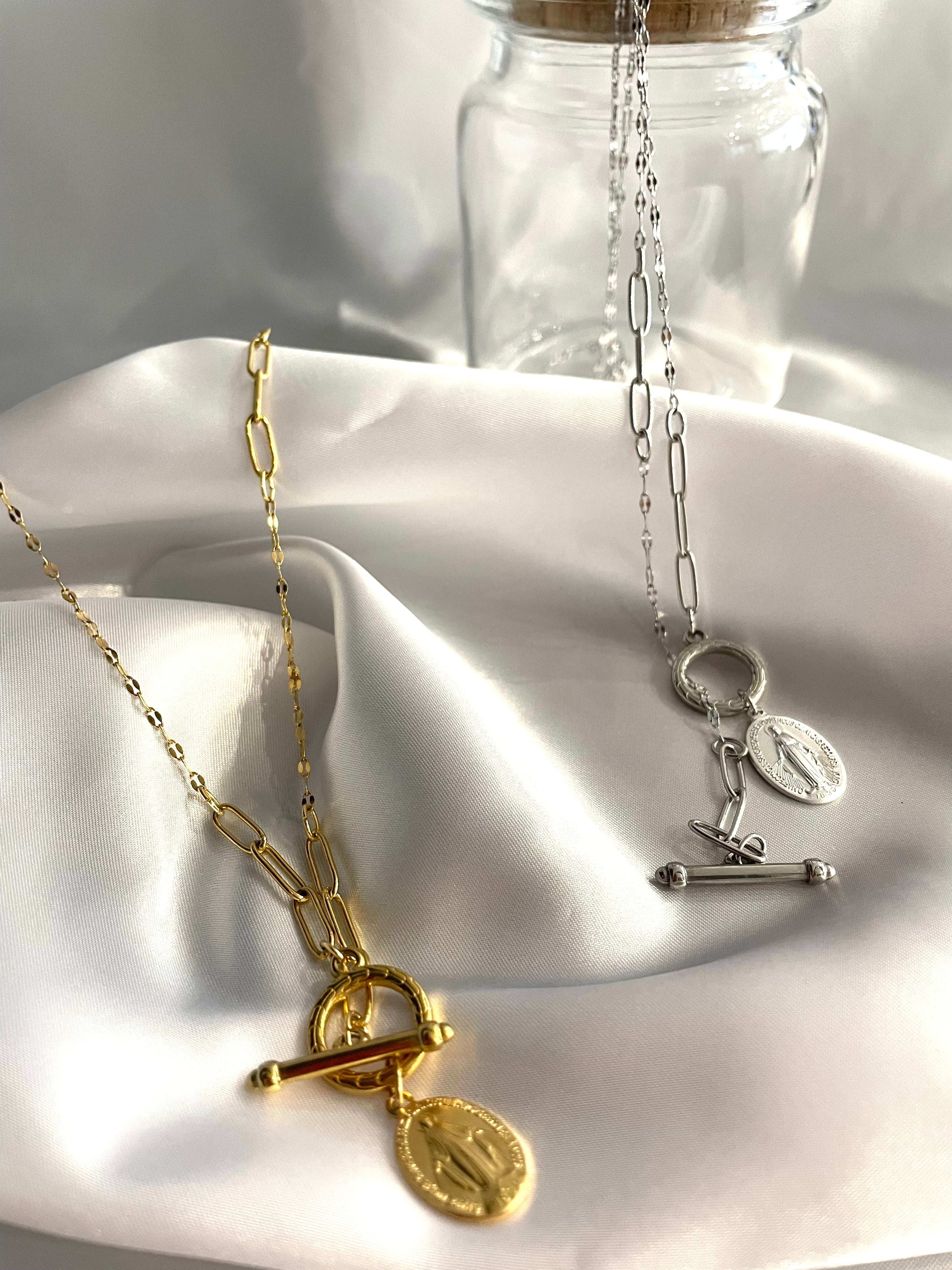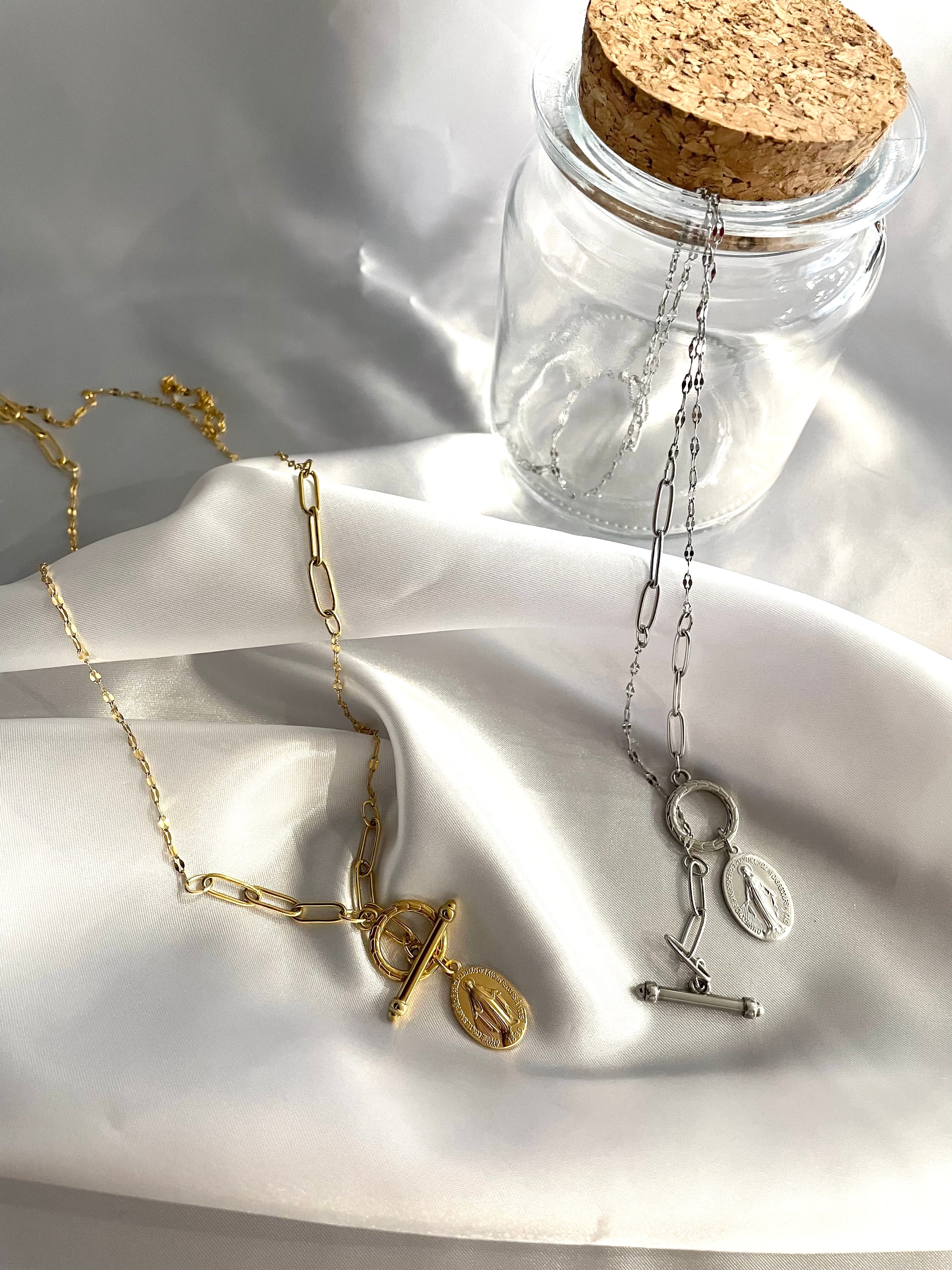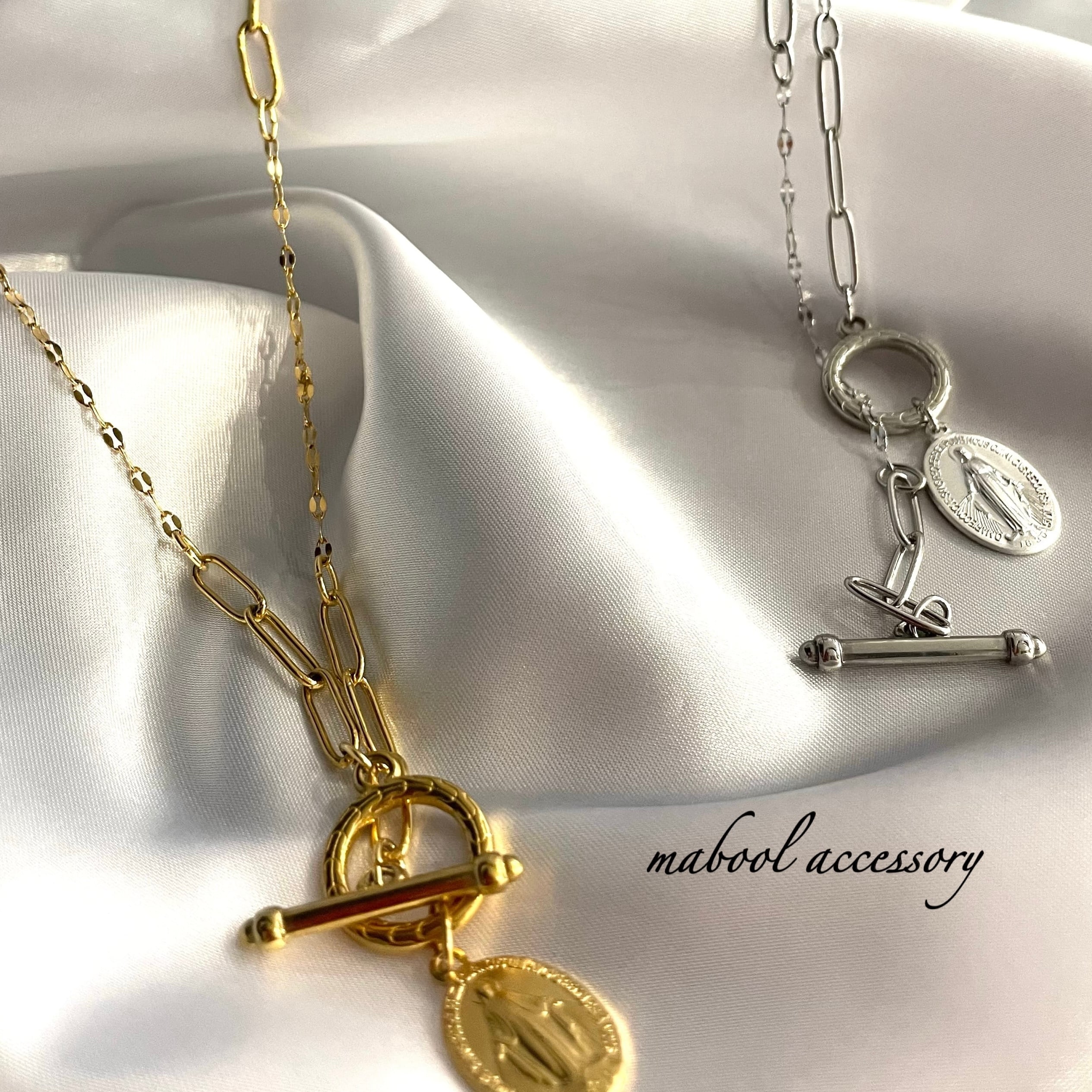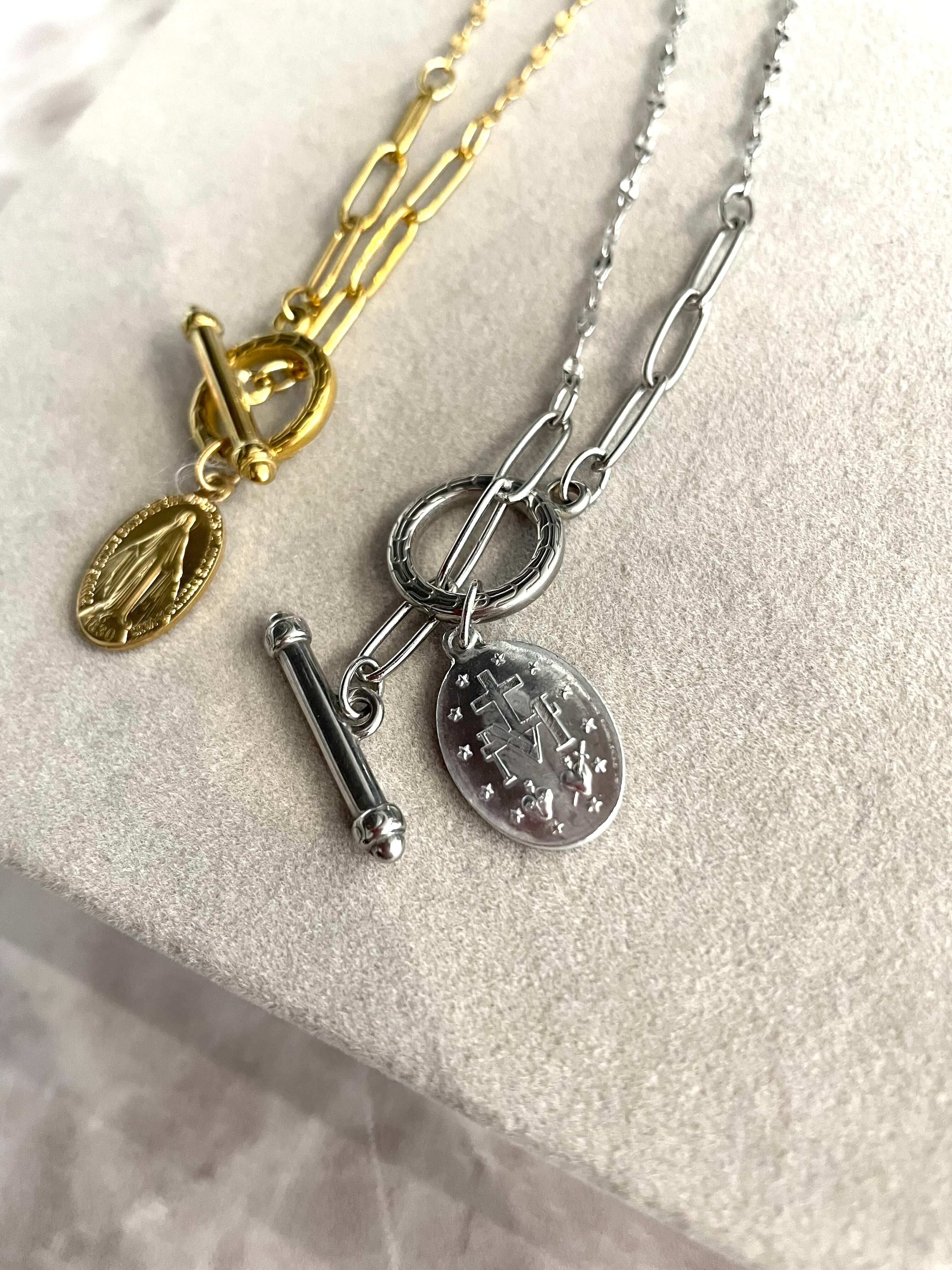 幸運のお守り《本物のメダイ使用》マリアロングネックレス『MIXチェーン』