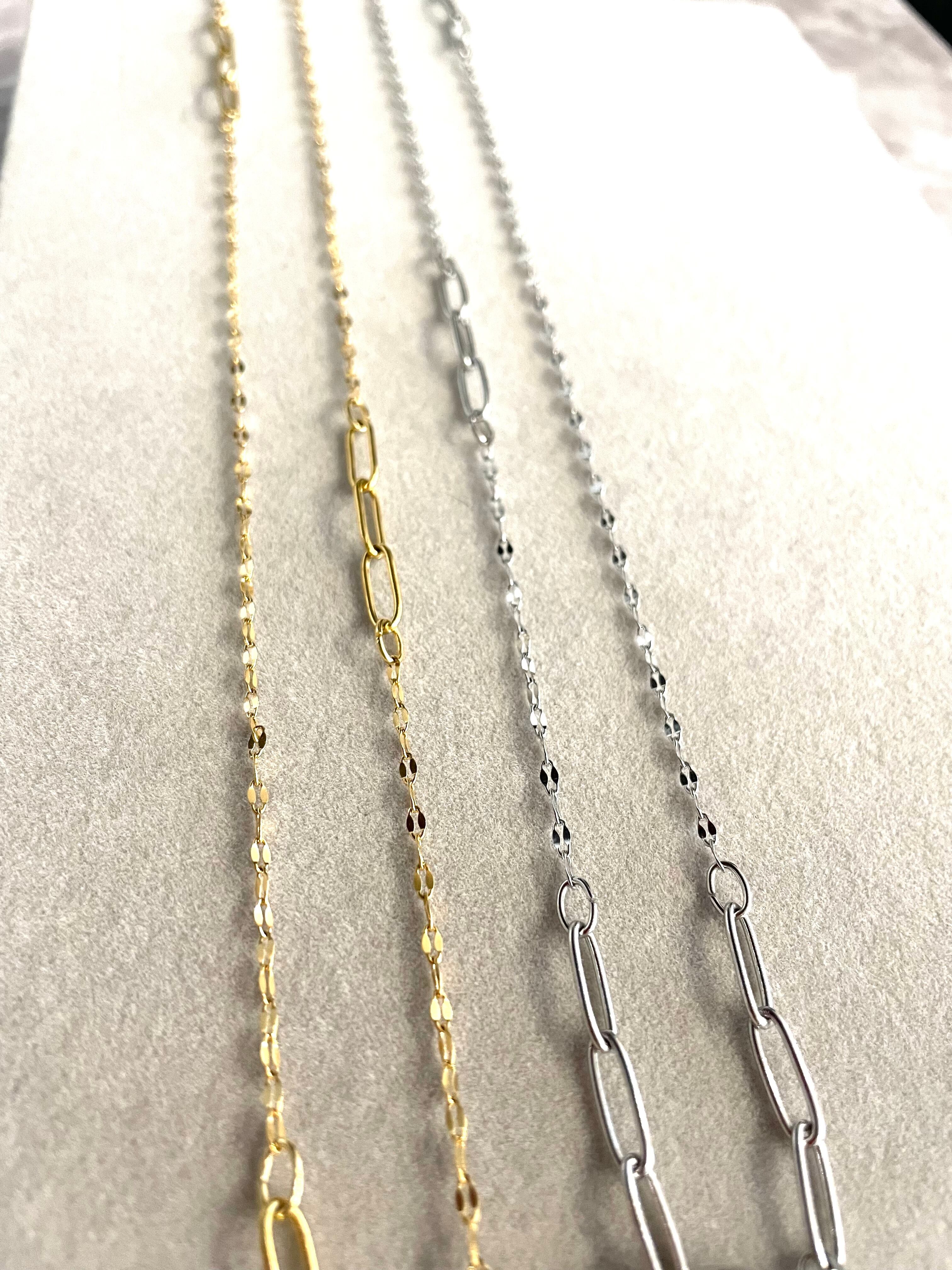 大きさの違う2種類をMIXして制作したオリジナルのチェーンは、肌馴染みがよく、光を反射し肌と顔を綺麗にみせてくれる効果が♡