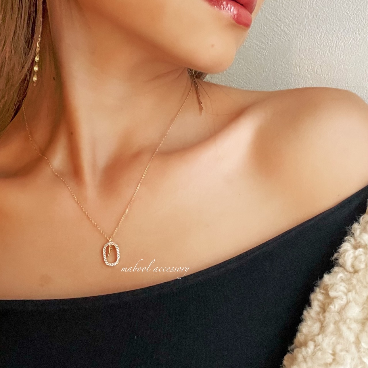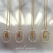 【NC】ストーンイニシャルネックレス/金属アレルギー対応