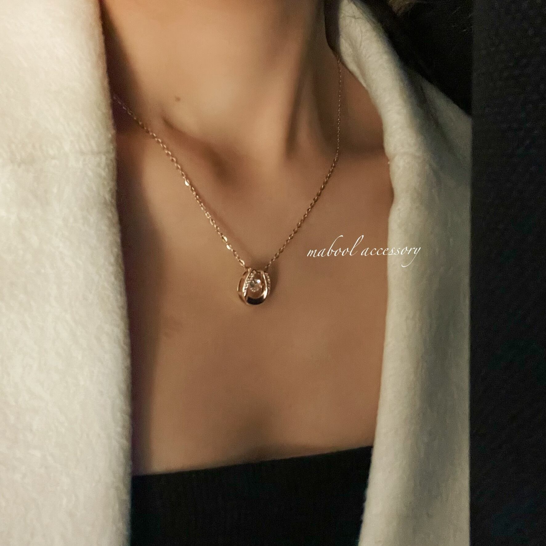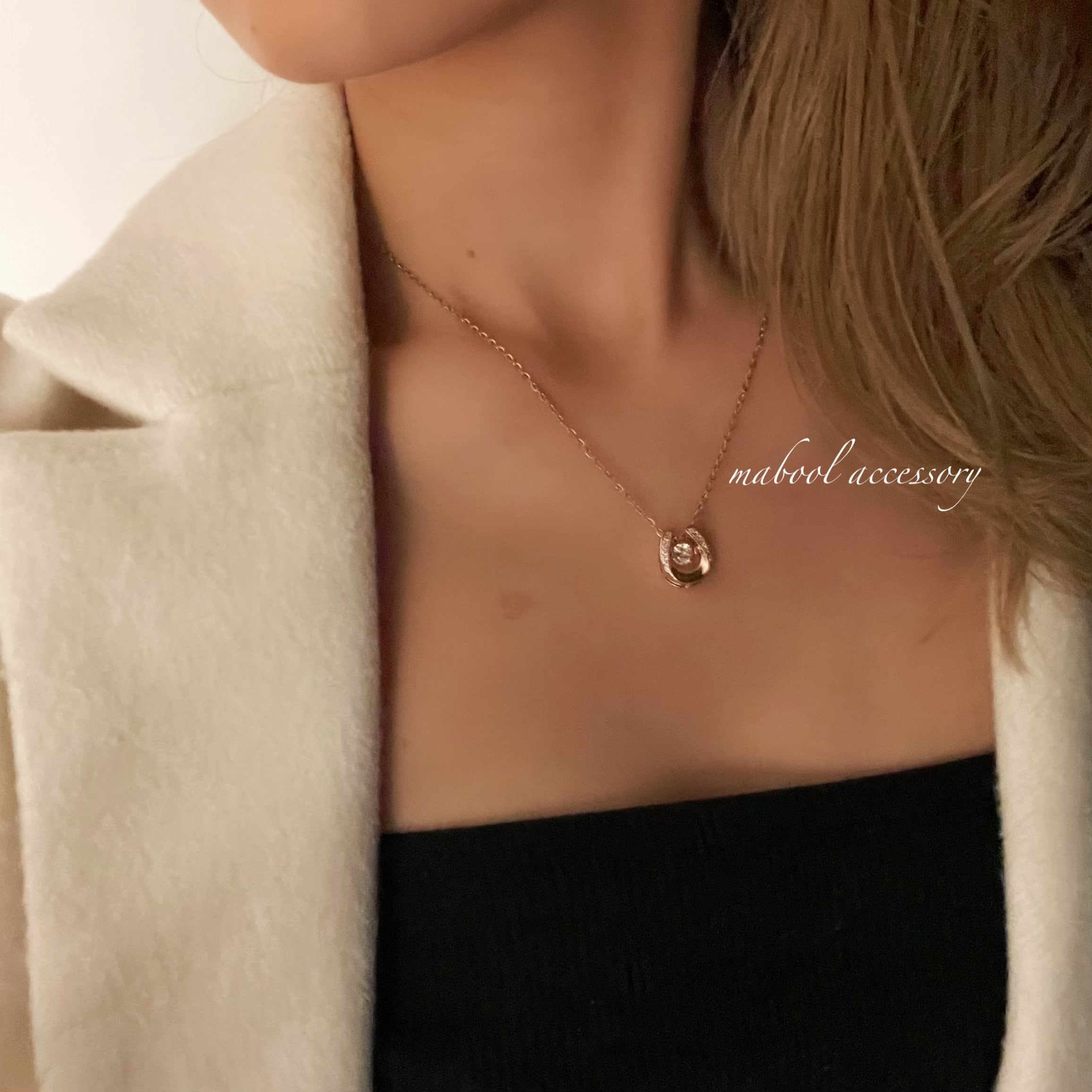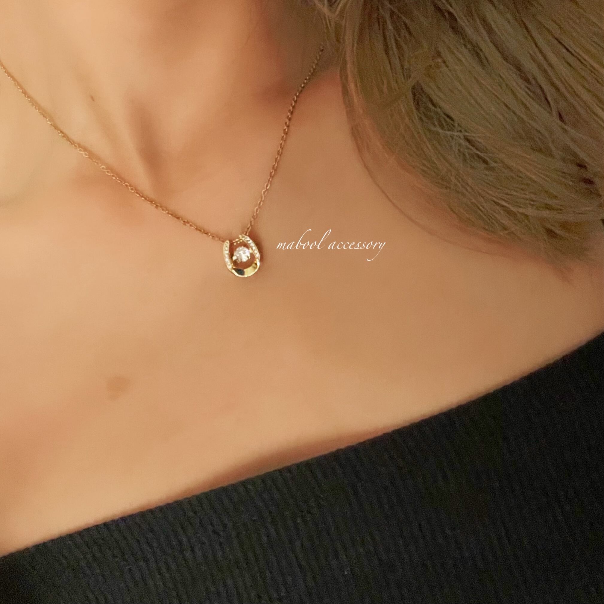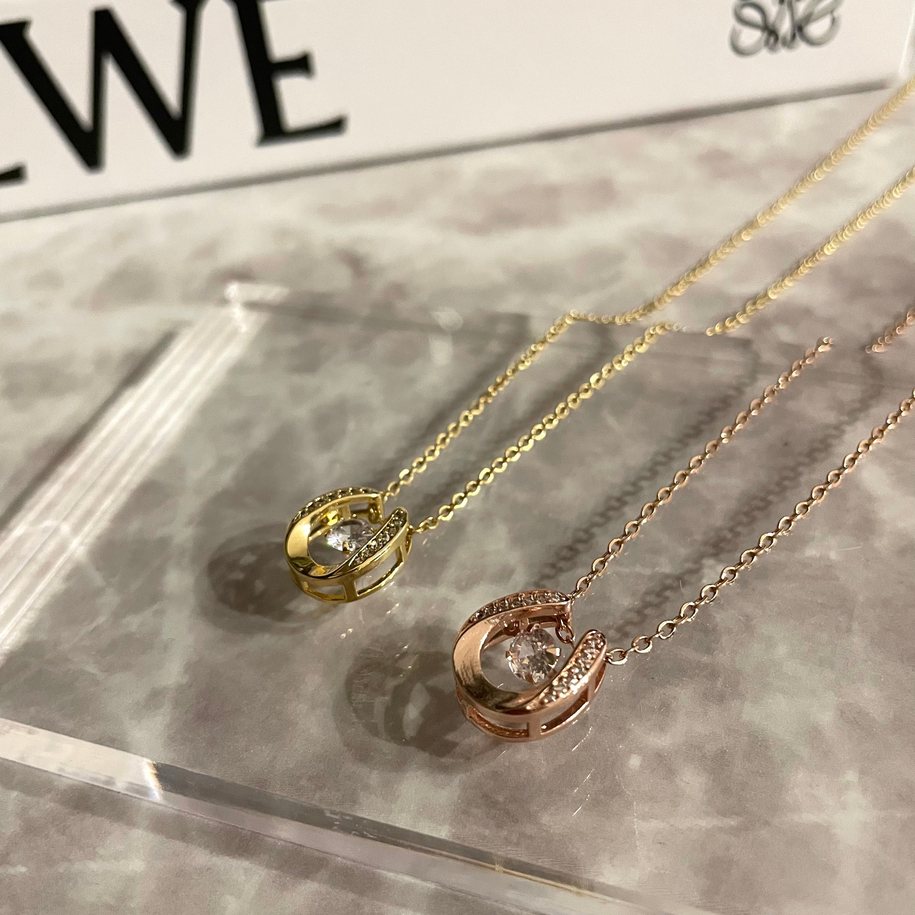 U字の美しいフォルムも女性らしく、中心の1粒ビジューがキラキラ輝き、胸元を華やかに彩ります。