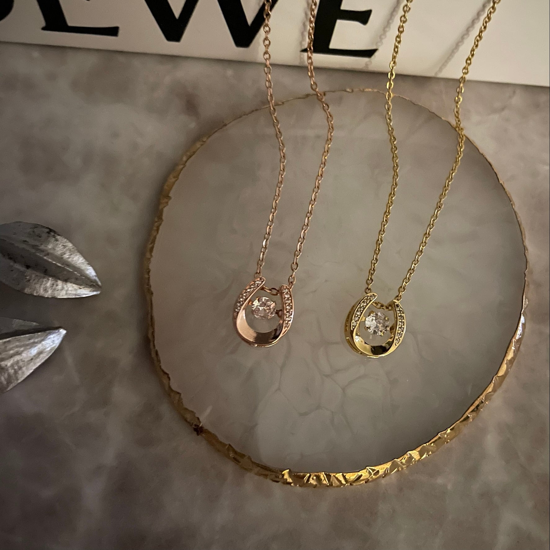 幸運 お守り 316L zirconiaストーン ホースシューネックレス/金属アレルギー対応