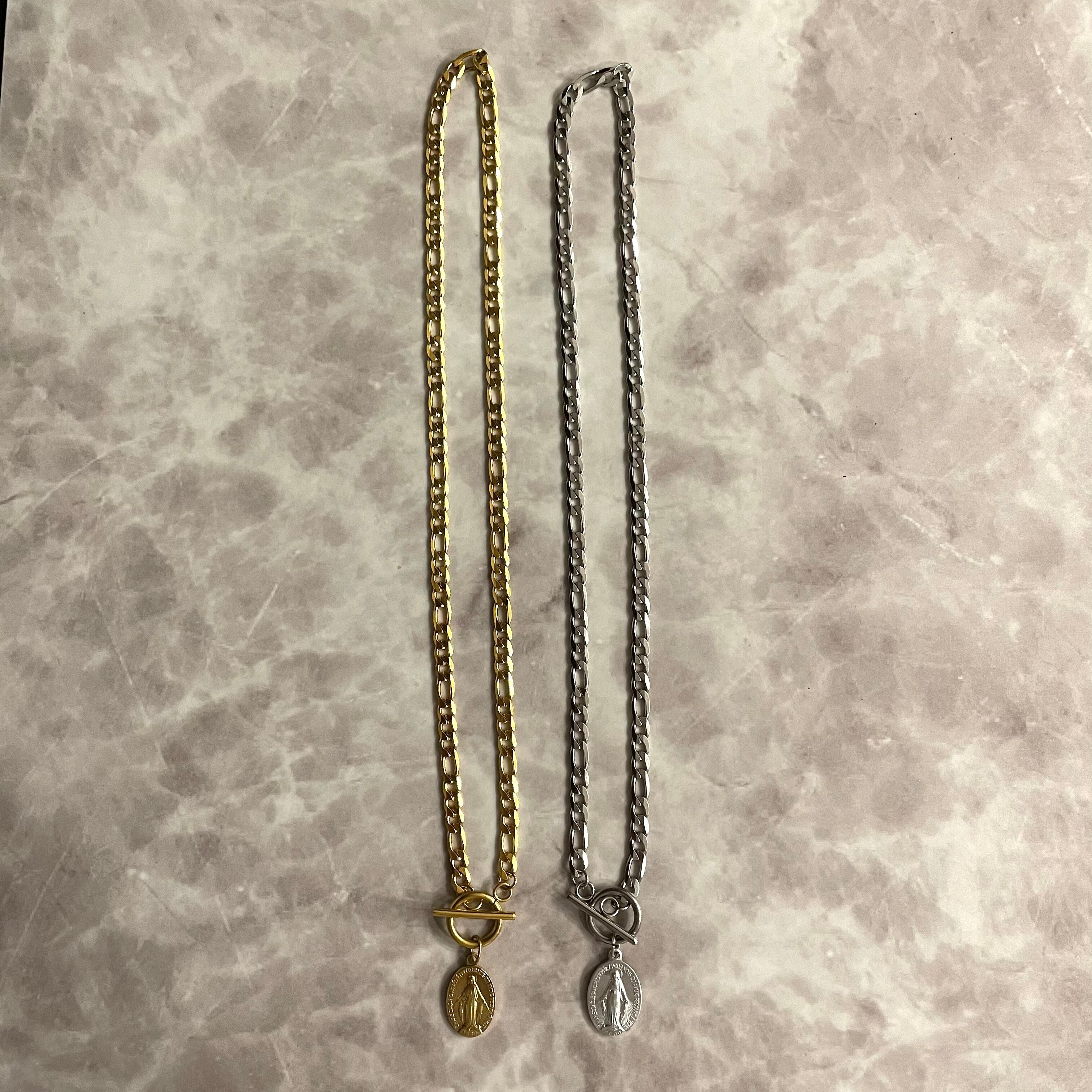 幸運のお守り《本物のメダイ使用》フィガロ マリアチェーンネックレス