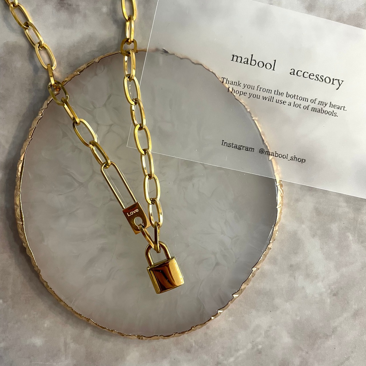 幸運 お守り【NC】316Lパドロックチェーンネックレス