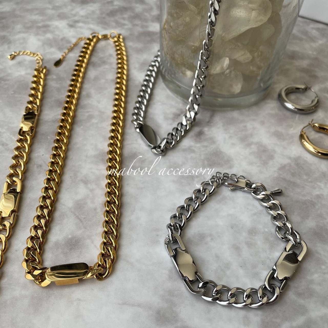 一本で手首が完成するチェーンブレス。