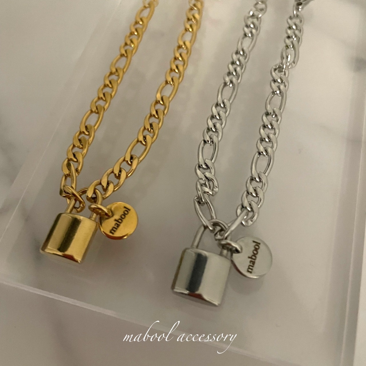 【bracelet】316L 幸せのパドロックチャームブレス《フィガロチェーン》 金属アレルギー対応