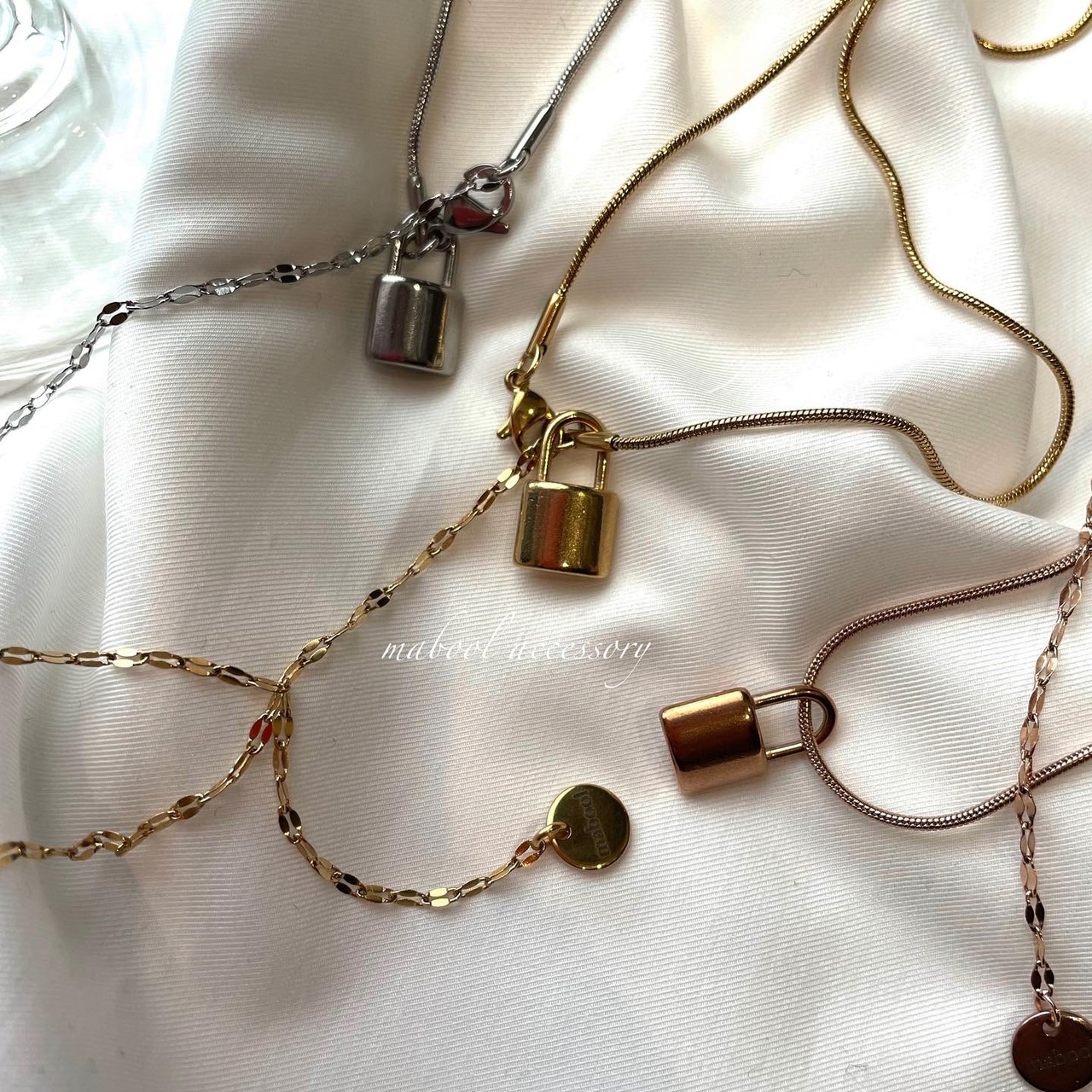 《パドロックモチーフ》南京錠は、お守りアクセサリーとして身に着けるのもおすすめ。