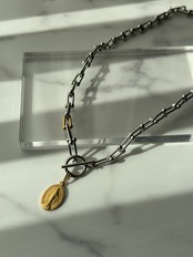 幸運のお守り《本物のメダイ使用》ホースシュー バイカラー マリアネックレス