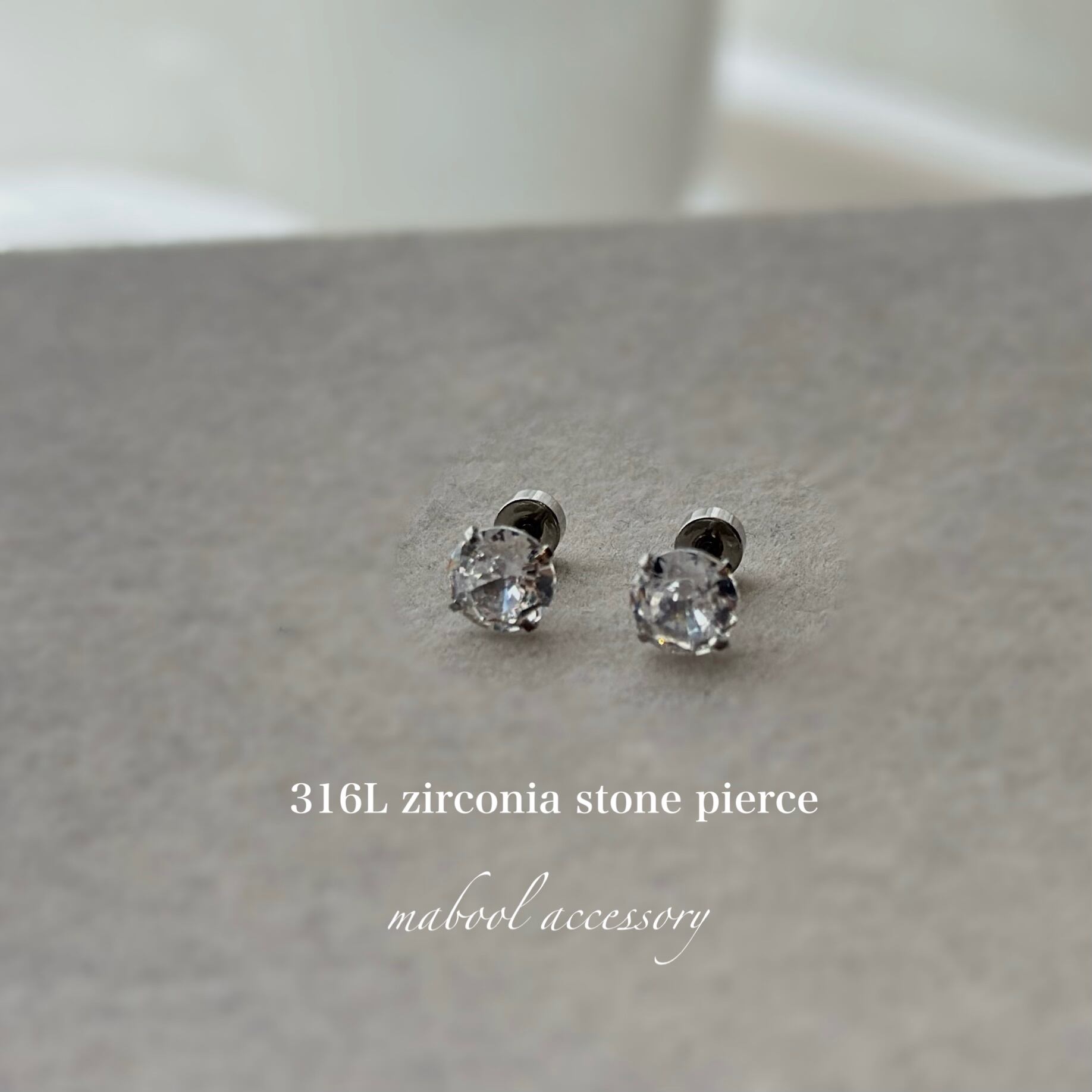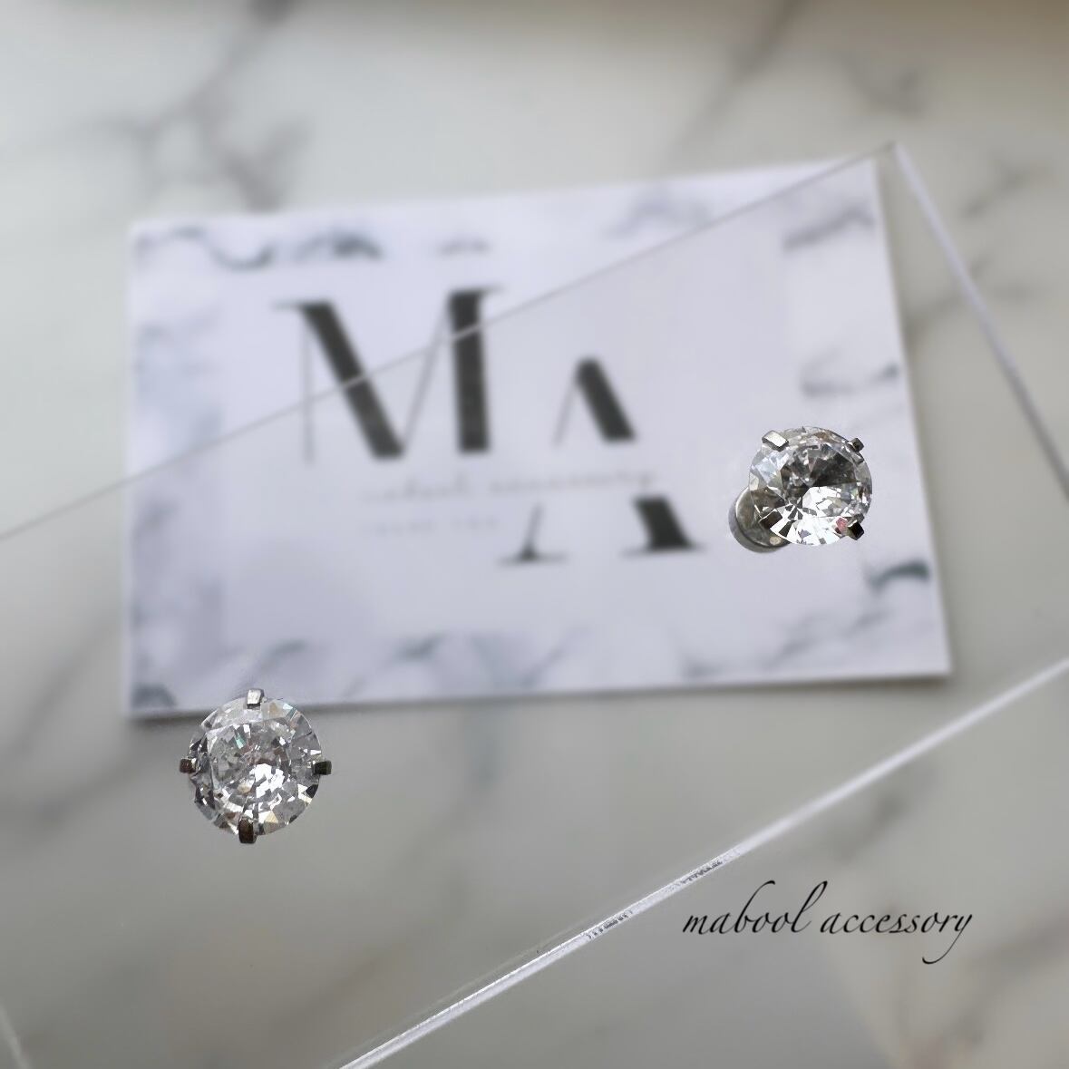 キラッと耳元が輝く1粒ジルコニアストーンピアス。